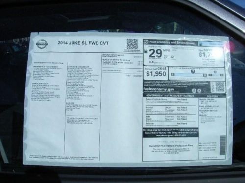 This vehicle has MSRP of $25,675, Won't last long!!! Isn't it time for a Nissan?** Need gas? I don't think so. At least not very much! 32 MPG Hwy*** This Juke is nicely equipped with optional equipment such as: Center Armrest, Carpeted Floormats & Cargo Mat (L93), Splash Guards... We have Excellent selection of new Nissan Juke in stock. Please be sure to contact VICTOR, Internet Sales Manager for Professional and No Pressure purchase, additional information and/or pricing on any model Nissan that you are interested in. **** Our goal is to provide the same rich, satisfying experience online that you will receive in our dealership. We pride ourselves on delivering the exceptional treatment customers expect. **** PLEASE Contact - VICTOR Internet Sales Manager for details at 888-505-5074 Thank you for visiting our website.