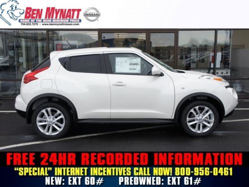 Sunroof, Overhead Airbag, Satellite Radio, CD Player, Bluetooth, [L93] CARPETED FLOORMATS & CARGO MAT.. [B92] SPLASH GUARDS, [N94] CENTER ARMREST. EPA 32 MPG Hwy/27 MPG City! PEARL WHITE exterior and Black interior, SV trim CLICK ME!======KEY FEATURES INCLUDE: Sunroof, Turbocharged, Satellite Radio, Bluetooth, CD Player, Aluminum Wheels. Privacy Glass, Keyless Entry, Child Safety Locks, Steering Wheel Controls, Electronic Stability Control. ======OPTION PACKAGES: CENTER ARMREST, CARPETED FLOORMATS & CARGO MAT (L93), SPLASH GUARDS, WHITE PEARL, BLACK, PREMIUM CLOTH SEAT TRIM, NAVIGATION PACKAGE: XM NavTraffic capability, Secure Digital (SD) Card-Based, Rockford Fosgate ecoPUNCH Premium Audio System, powered subwoofer, USB Interface, Navigation System w/5 Color Touchscreen Display, SiriusXM satellite radio capability and rearview monitor. SV with PEARL WHITE exterior and Black interior features a 4 Cylinder Engine with 188 HP at 5600 RPM*. Brand New. ======VEHICLE REVIEWS: KBB.com's review says If you need a compact crossover SUV that sips fuel, yet can still tackle the toughest winter weather with ease, consider the 2014 Nissan Juke.. Great Gas Mileage: 32 MPG Hwy. ======BUY FROM AN AWARD WINNING DEALER: Visit us Today! Dealer Award Winner for outstanding sales and service in the Charlotte region. We are one of North Carolina's Largest Certified Nissan Dealers. Our team is professional, offers you a no-pressure environment and operates with the quality you expect. Price includes all applicable rebates in lieu of special NMAC finance rates and may be based on purchaser's zip code at the time of purchase. Prices do not include taxes, tag, and $589 administrative fee. Horsepower calculations based on trim engine configuration. Fuel economy calculations based on original manufacturer data for trim engine configuration. Please confirm the accuracy of the included equipment by calling us prior to purchase.