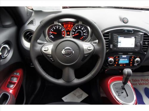 NAV, Sunroof, Satellite Radio, Bluetooth, [L93] CARPETED FLOORMATS & CARGO MAT.. [U01] NAVIGATION PACKAGE, [N94] CENTER ARMREST, Alloy Wheels. SV trim, Cayenne Red exterior and Black/Red interior. EPA 32 MPG Hwy/27 MPG City! CLICK ME!======KEY FEATURES INCLUDE: Sunroof, Satellite Radio, Bluetooth, Aluminum Wheels. Keyless Entry, Privacy Glass, Child Safety Locks, Steering Wheel Controls, Electronic Stability Control. ======OPTION PACKAGES: NAVIGATION PACKAGE: XM NavTraffic capability, Secure Digital (SD) Card-Based, Rockford Fosgate ecoPUNCH Premium Audio System, powered subwoofer, USB Interface, Navigation System w/5 Color Touchscreen Display, SiriusXM satellite radio capability and rearview monitor, CARPETED FLOORMATS & CARGO MAT (L93), SPLASH GUARDS, CENTER ARMREST. SV with Cayenne Red exterior and Black/Red interior features a 4 Cylinder Engine with 188 HP at 5600 RPM*. ======EXPERTS CONCLUDE: KBB.com explains If you need a compact crossover SUV that sips fuel, yet can still tackle the toughest winter weather with ease, consider the 2014 Nissan Juke.. Great Gas Mileage: 32 MPG Hwy. ======WHO WE ARE: Visit us Today! Dealer Award Winner for outstanding sales and service in the Charlotte region. We are one of North Carolina's Largest Certified Nissan Dealers. Our team is professional, offers you a no-pressure environment and operates with the quality you expect. Price includes all applicable rebates in lieu of special NMAC finance rates and may be based on purchaser's zip code at the time of purchase. Prices do not include taxes, tag, and $589 administrative fee. Horsepower calculations based on trim engine configuration. Fuel economy calculations based on original manufacturer data for trim engine configuration. Please confirm the accuracy of the included equipment by calling us prior to purchase.