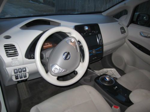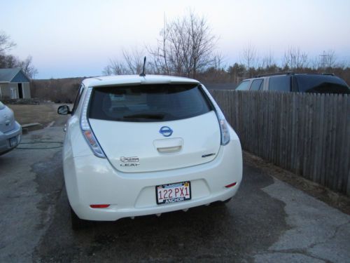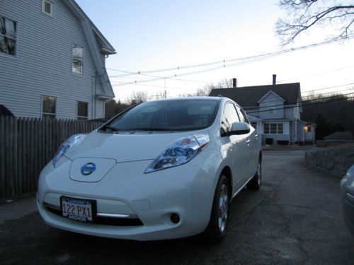 I am selling my pearl white exterior, tan cloth interior, Nissan Leaf SV. You will never need to go to the smelly expensive gas station again! The car is Soo smooth, quiet and quick its great. It has navigation, heated front and rear seats as well as leather wrapped steering wheel. It has Nissan's smart key, alarm, power windows, doors, AC, Navigation, Stereo including XM satellite, CD, ABS, traction control, cruise control, trip computer, hands free phone system, power windows, doors, factory floor mats. Windows are legal tint. It has the J1772 port like all modern electric cars. I bought the car a few months ago and it is a certified leaf with a warranty up to 100k miles. I was told it had a Chademo quick port but it doesn't. I will buy another Leaf with the port because I do a lot of long distance trips. This car gets me to work and back in comfort every day so the millage will increase by at least 50 miles per day. I charge it for free at work. You can also charge for free at Nissan dealers or at certain charging stations. There are apps for smart phones or just hit the blue button on the dash for the closest station. The vehicle is in excellent shape and garaged every night. It has a clean carfax and clean title and NO dents or dings! I do have a lean but you can make the check out right to the bank along with my check and you will get the title quickly. I am the 2nd owner. Call me with any questions 617-960-7933 and come and test drive it / inspect it.