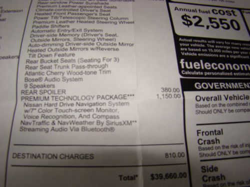 2012 black nissan maxima navi chrome leather pano sunroof cd one owner low miles
