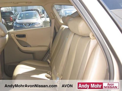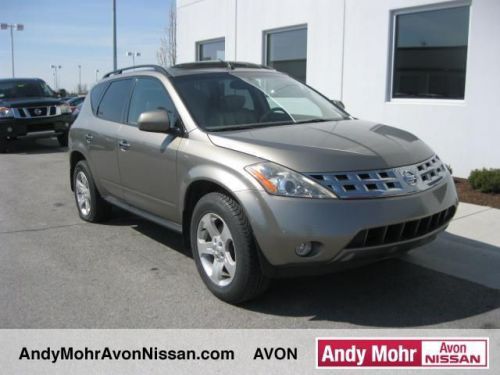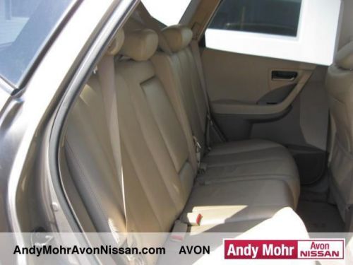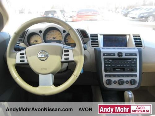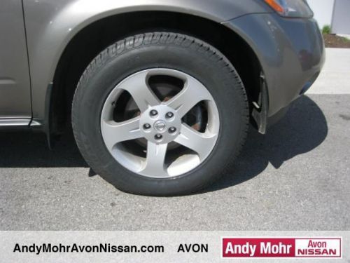 CHECK OUT THIS MURANO! SUPER NICE, AND SUPER INEXPENSIVE! DON'T WAIT! THIS ONE WON'T LAST AT THIS PRICE! Murano SL CVT AWD in Polished Pewter Metallic! BOSE SOUND SYSTEM! CLEAN CARFAX! LEATHER INTERIOR AND HEATED SEATS! Serious price reduction! Must sell! Stop clicking the mouse because this 2004 Nissan Murano is the family SUV you've been yearning to get your hands on. J.D. Power and Associates gave the 2004 Murano 4.5 out of 5 Power Circles for Overall Performance and Design. Rack up savings on this priced-to-move Murano. So clean, it looks like it just rolled off the showroom floor. You will get MOHR for your money at Andy Mohr Avon Nissan! We have one of the largest pre-owned inventories in the state. Our pre-owned vehicles are hand-picked by the best in the business, have receive a comprehensive inspection and are ready for delivery today. Andy Mohr sets the standard for price, selection and service! Visit our new, state-of-the-art dealership today and see for yourself. We carry all makes and models such as Nissan,GMC,Buick,Chevy.