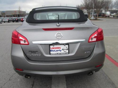 This is a great vehicle at a great price. It has been properly serviced and inspected by our certified trained technicians for your peace of mind. Ask about our lifetime powertrain warranty on selected pre-owned and certified vehicles. -Priced Below The Market Average- Navigation System; Backup Camera; Bluetooth; Heated Front Seats; Leather Seats; Satellite Radio; 6 Cylinder Engine; All Wheel Drive; High Intensity Headlights; and Rain Sensing Wipers -Carfax One Owner- -Certified- -Low Mileage- This Gray 2011 Nissan Murano CrossCabriolet AWD is priced to sell fast! This Murano CrossCabriolet has a very popular Gray exterior color with a Beige interior that looks fantastic! Landers McLarty Nissan prides itself on value pricing its vehicles and exceeding all customer expectations! The next step? Give us a call to confirm availability and schedule a hassle free test drive! We are located at: 2501 SE Moberly Ln; Bentonville; AR 72712. Call our Internet Sales Department at 866-414-8919 today. Landers McLarty Nissan sincerely appreciates the opportunity to earn your business not just today, but for many years to come. We are the Home of the Lifetime Warranty.