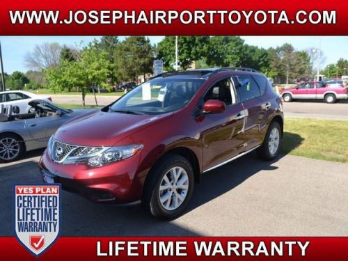 **CERTIFIED YES PLAN WARRANTY FOR LIFE** Imagine yourself behind the wheel of this good-looking 2012 Nissan Murano. There are plenty of miles left on this Murano so you don't have to worry about going everywhere you need to go. We know that shopping for a pre-owned vehicle can be full of uncertainties. We are so confident in OUR pre-owned vehicles that we have covered them with our YES PLAN Certified program. With the YES PLAN you can BUY HERE and SERVICE ANYWHERE. Enjoy the peace of mind of a true NATIONWIDE powertrain warranty. Worry free ownership, Only from Joseph Airport. And because we appreciate your business, enjoy your first oil change on us! COMPLIMENTARY!.