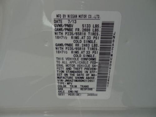 VIN (Vehicle Identification Number): JN8AZ1MU8DW212651