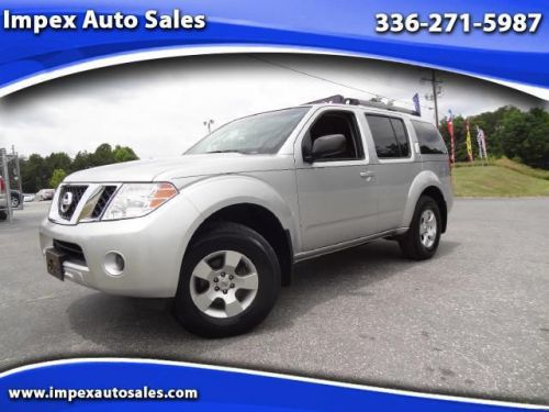 This 2008 Nissan Pathfinder LX is equipped with the following options: automatic transmission, power windows, power door locks, cloth seats, 3rd row seating, am/fm cd player, alloy wheels, dual air bags, air conditioning, 4X4, cruise control, keyless entry and much more!! CALL 888-489-3487 TODAY!! Impex Auto Sales is the Triad's LARGEST independent Pre-Owned dealer! Now accepting all major credit and debit cards! Visa, MasterCard, Discover, and American Express! Because we sell so many cars, trucks, motorcycles, and commercial vehicles, our prices are the ABSOLUTE LOWEST!!! We are a family owned and operated business serving the Carolinas since 2004. Contact us at 888-489-3487 or ImpexAutoSales.com.We pride ourselves on our reputation for honest service and delivering quality automobiles. Come by today and let us show you how purchasing a pre-owned vehicle SHOULD BE! We offer free shuttles from Greensboro's Piedmont-Triad International Airport (GSO), Greensboro Amtrak Station (GRO), and the Greensboro Greyhound Bus Terminal. We respect and honor your time so we can ship autos all over the United States and export all over the world! Don't trust just anyone to transport your new car! Our experienced partners in the shipping industry to Africa, Asia, South America, North America, and Europe makes us the Most Dpendable in the industry. Contact us for a shipping quote and get your vehicle fast! We are proud to have sales representatives fluent in English, Spanish, French, Arabic, and Japanese for the convenience of our valued customers. *****Please note, while we make every effort to ensure that our vehicles are listed accurately, we are not responsible for errors or omissions. Please verify all options, colors, vehicle condition, pricing and AVAILABILITY prior to purchase.****** We have a hassle free business approach that provides a relaxed and comfortable environment for our customers. Sell us your car even if you don't buy from us! We don't play the games that other dealers do: If you sell or trade to us, you get the same price! Come in today for a quick appraisal! They generally take no longer than 15 minutes! Stop by and get the best deal on a used car, guaranteed!