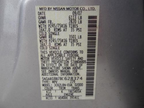 VIN (Vehicle Identification Number): 5N1AR18B78C628374