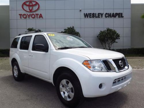 **LIFETIME POWERTRAIN WARRANTY**,**ONE OWNER!!**, **3RD ROW SEATING**, **ALLOY WHEELS**, **CLEAN CARFAX**, **IMPECCABLE CONDITION**, **POWER LOCKS**, **POWER WINDOWS**, **REMOTE KEYLESS ENTRY**, and **SUPER CLEAN**. Nissan has done it again! They have built some really good vehicles and this attractive-looking 2011 Nissan Pathfinder is no exception! It will take you where you need to go every time...all you have to do is steer! Visit www.realdeal.com/42n5e to view a Free Price Check! Call our internet sales team today and ask for a video walk-around. Visit us at http://wesleychapeltoyota.com 5300 Eagleston Blvd Wesley Chapel FL 33544. On the corner of Bruce B Downs and SR54. Used 2011 Nissan Pathfinder in Wesley Chapel & Tampa Florida...