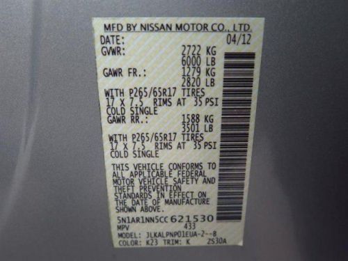 VIN (Vehicle Identification Number): 5N1AR1NN5CC621530