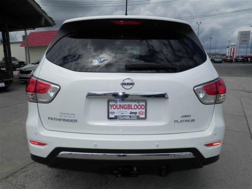 Want to feel like you've won the lottery? This Platinum will give you just the feeling you want, but the only thing your long lost relatives will be after is a ride!! This outstanding SUV, with its grippy 4WD, will handle anything mother nature decides to throw at you. Special Financing Available: APR AS LOW AS 0% OR INCENTIVES AS HIGH AS $2,000. This gas-saving 2014 Nissan Pathfinder Platinum will get you where you need to go... Right car! Right price! Safety Features Include: ABS, Traction control, Curtain airbags, Passenger Airbag, Front fog/driving lights...This Pathfinder is nicely equipped with features such as: Leather seats, Navigation, Bluetooth, Power locks, Power windows... What a Place! What A Place! Please view our 4.9 customer rating at http://www.dealerrater.com/dealer/Youngblood-Nissan-review-15124/ Come experience excellent customer service at Youngblood.