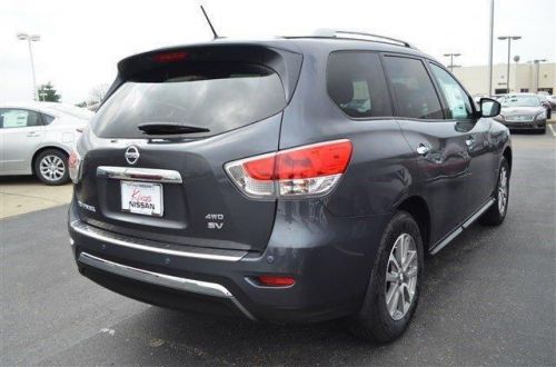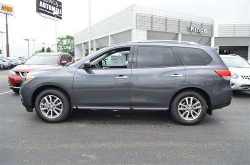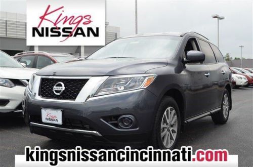 The 2014 Nissan Pathfinder is an incredible 7-passenger crossover that features a sporty look with plenty of attitude and space to go around. It has luxurious body sculpting that starts with the tapered front, with its chrome-framed grille and dramatic head lights, and then glides all the way back. It has notably large windows as well, which helps the driver with visibility. For 2014, the Pathfinder is not only available as a gasoline vehicle, but a new Hybrid as well. The gas models include the base level S trim, the SV and SL, and the top-level Platinum. They share a 3.5-liter, 24-valve, V6 engine with 260 Horsepower, which is paired with the incredible Xtronic Continuously Variable Transmission. The Hybrid model comes in three trims: SV, SL and Platinum. It has a SuperCharged 2.5-liter 4-cylinder engine and an electric motor with an Intelligent Dual Clutch System. It has a lithium-ion battery, and gets 250 Horsepower and 243 lb-ft of Torque. Plus, it features electrically driven regenerative brakes. In addition, the All-Mode 4x4-i intuitive 4WD system is an available option for gas as well as hybrid models. The Base S trim comes very generously equipped. It includes features like Power Windows, a 6-CD, Six Speaker Sound System with auxiliary input, audio controls on the steering wheel, Push Button Ignition, and Tri-Zone Temperature Control. Plus, it comes with the EZ Flex Seating System, where the 2nd row glides and tilts forward for access to the reclining 3rd row! Both 2nd and 3rd rows fold flat as well for your cargo, which allows for a maximum capacity of 79.8 cubic feet. Depending on which you select, higher level trims offer available technology options like the Rear Sonar System, RearView Monitor, and the amazing Around View Monitor. Another addition for 2014 is a Tech Package for the SL trim that bundles items such as navigation with an 8-inch touch screen, a Bose premium sound system. Drive the 2014 Nissan Pathfinder today!. ****KINGS NISSAN INTERNET SPECIAL'S**** CALL TOLL FREE 888-454-8431 TO RECEIVE ADDITIONAL SAVINGS PLUS LIFETIME FREE CAR WASHES. FOR MORE INFORMATION ON THESE SPECIALS AND MANY OTHERS CALL TODAY AND ASK FOR SALES OR EMAIL US AT internetsales@kingsnissancincinnati.com