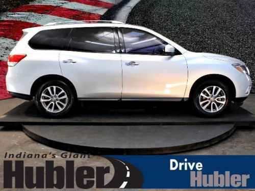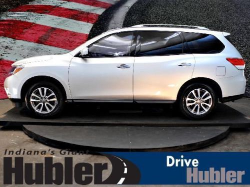 Nissan Certified, Extra Clean, CARFAX 1-Owner. REDUCED FROM $28,995!, $1,700 below NADA Retail!, EPA 25 MPG Hwy/19 MPG City! Third Row Seat, iPod/MP3 Input, Satellite Radio, Bluetooth, Dual Zone A/C, CD Player, Head Airbag CLICK NOW!======KEY FEATURES INCLUDE: Third Row Seat, Rear Air, Back-Up Camera, Satellite Radio, iPod/MP3 Input, Bluetooth, CD Player, Dual Zone A/C Rear Spoiler, MP3 Player, 4x4, Aluminum Wheels, Keyless Entry. SV with Brilliant Silver exterior and Charcoal interior features a V6 Cylinder Engine with 260 HP at 6400 RPM*. Non-Smoker vehicle, One Year No Charge Oil Changes. ======EXPERTS RAVE: Edmunds.com's review says Premium interior design with high-quality materials; ample passenger room in all three rows; good fuel economy; user-friendly electronics interface.. Great Gas Mileage: 25 MPG Hwy. ======A GREAT TIME TO BUY: Reduced from $28, 995. This Pathfinder is priced $1, 700 below NADA Retail. ======PURCHASE WITH CONFIDENCE: 7-Year/100, 000-Mile Powertrain Warranty from original in-service date ======WHO WE ARE: After more than 50 years in business, The Hubler Auto Group, through the power of ten central Indiana locations, has literally sold hundreds of thousands of vehicles and is one of the oldest and most prolific auto dealers in the State employing 550 people. The Hubler Auto Group can claim the title for selling more G.M. vehicles in the State of Indiana than any other dealer or dealer group, and has earned the right to brag of having the largest and most loyal customer Pricing analysis performed on 5/28/2014. Horsepower calculations based on trim engine configuration. Fuel economy calculations based on original manufacturer data for trim engine configuration. Please confirm the accuracy of the included equipment by calling us prior to purchase. Hubler Nissan is committed to providing the finest automotive ownership experience through superior customer service. Let us make you a "Customer for life". We have 99% Guaranteed Credit Approval! For more details or to schedule an appointment, call us at 888-249-0514.