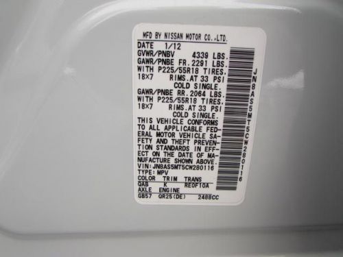 VIN (Vehicle Identification Number): JN8AS5MT5CW280116