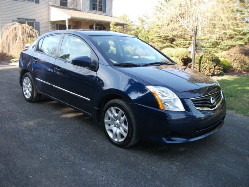 2011 Nissan Sentra 4 door sedan. 4 cylinder and front wheel drive. Wow, what can I say about this car?? We purchased it brand new at the local Nissan dealer. It is a one owner, lady driven. It was dealer maintained and serviced, with the exception of the last oil change. It is a very well kept car. It has 4 brand new tires, detailed, and ready to go!! Everything works as it should, no mechanical defects. It is a non smoker, no pets with a beautiful interior. Mats are like new because a second set of mats were used over the factory ones. It has no scratches, and the paint is shiny! The only thing I can find on the car are 2 very light dingles. One on the rear roof, the size of a pea, an another on the trunk. Both could be fixed by paintless dent repair. 2 hubcaps have some of the grey paint off here or there that can be easily resprayed. This car is very nice. It was waxed every few weeks for my wife, who loved and babied this car for 3 years. Amazing on gas-averaging 30 mpg local. The only reason we are selling it is because the kids are growing up an getting too big for it. Very nice blue color with complimentary grey interior, which is immaculate. Whoever gets this car will surely be pleased-gorgeous car with no hidden problems.