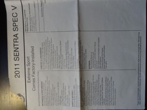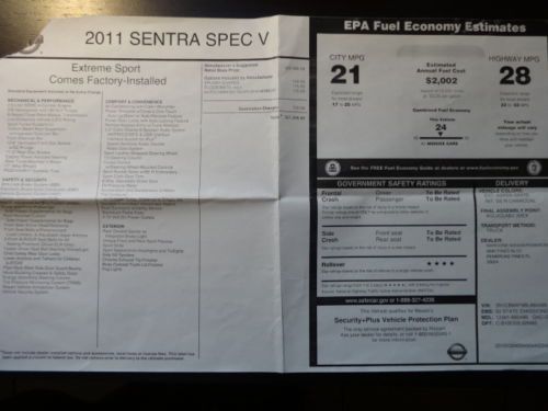 One owner, 2011 Nissan Sentra Spec-V for sale sold with portable Garmin GPS and remaining 5 year/75 k warranty (which includes rental car), 7 year/100 k mile warranty on engine, and approximate 77 k mile additional warranty on transmission. The car runs like new and is very fun to drive. I typically get around 24-26 mpg city and 28-30 mpg highway.