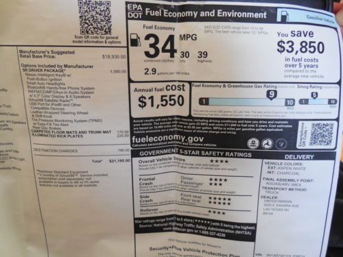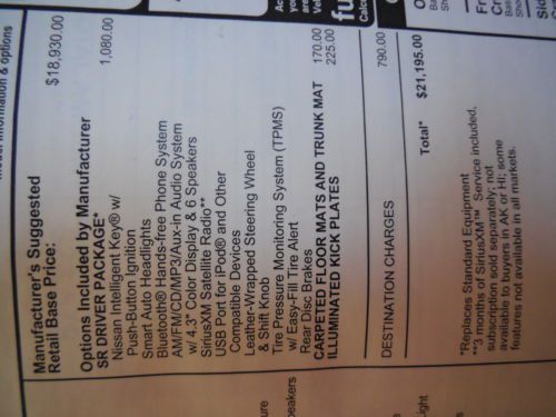 WOW Save multi-thousands of dollars on this car. Perfect for one who wants a newer car at a fraction of the new car price. Great first car or for a college student. 2013 Nissen Sentra SR Only has 2700 MILES. This car lists for over $21,195. Has AC, power windows, power locks, AM/FM/CD/Aux-in Audio System with a 4.3" Color Display and 6 speakers, LED taillights, 17" Alloy Wheels, Premium Sport Cloth Seats (Charcoal) and Pearl Metallic White exterior, 2 Remote Keyless Entry Fobs and Push Button Ignition. See photo of the window sticker to see exactly what this car has. Now for the bad part...This car was in an accident in the middle of the hood (looks like an animal impact) Look at the last 3 photos. This DID NOT effect any of the mechanics on the car (condensor, radiator, ). I replaced the hood and bumper with new Nissan parts and have the receipts to prove it. The back bumper (color) seems not to exactly match the rest of the car. This car was professionally repaired and RUNS and DRIVES and looks excellent just like a 2013 should be. This car has a SALVAGE title (from the Insurance Company) but can be changed to a REBUILT Title if the buyer wants it without any extra charge. .NO RESERVE AUCTION..High bidder gets the car! What else can I say.Look at my 100 percent selling feedback and you will see many happy people and these are not beenie babies ... These are high ticket items..These are real cars at great prices. .This car purchased with damage (beware of those who say minor damage but do not show you photos of the damage) I include the photos of the damage as I am an honest person.Check feedback.. ...look at that shine.. No smoke and mirrors here.I know its difficult to buy a high ticket item on ebay but I will try my best to make it all go easy.I am a Harley wholesaler and only but the BEST vehicles out there at the best prices. No kiddin I really do.Fly into Vegas and drive this baby home !!!!!!! Or I can get a discount on shipping on this car if you chose to do so as buyer is responsible for shipping costs.You will like this car. Feel free to ask any questions you have. Thanks for looking Steve. Nevada residents are required to change this to a Rebuilt Title and you must pay 8% sales tax.sorry about that. |
