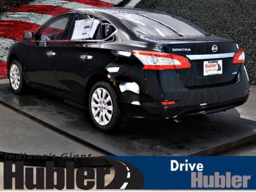 CD Player, [L92] CARPETED FLOOR MATS W/TRUNK MAT... CHARCOAL, CLOTH SEAT TRIM, SUPER BLACK, iPod/MP3 Input, Head Airbag. Super Black exterior and Charcoal interior, S trim. Warranty 5 yrs/60k Miles - Drivetrain Warranty; CLICK ME!======KEY FEATURES INCLUDE: iPod/MP3 Input, CD Player MP3 Player, Keyless Entry, Remote Trunk Release, Child Safety Locks, Electronic Stability Control. ======OPTION PACKAGES: CARPETED FLOOR MATS W/TRUNK MAT, SUPER BLACK, CHARCOAL, CLOTH SEAT TRIM. S with Super Black exterior and Charcoal interior features a 4 Cylinder Engine with 130 HP at 6000 RPM*. ======VEHICLE REVIEWS: Edmunds.com explains Taller drivers will welcome the Nissan Sentra's unexpectedly spacious front seats. Rear-seat passengers aren't left out, either. the Sentra practically feels like a midsize sedan from the backseat.. ======MORE ABOUT US: After more than 50 years in business, The Hubler Auto Group, through the power of ten central Indiana locations, has literally sold hundreds of thousands of vehicles and is one of the oldest and most prolific auto dealers in the State employing 550 people. The Hubler Auto Group can claim the title for selling more G.M. vehicles in the State of Indiana than any other dealer or dealer group, and has earned the right to brag of having the largest and most loyal customer Horsepower calculations based on trim engine configuration. Please confirm the accuracy of the included equipment by calling us prior to purchase. Hubler Nissan is committed to providing the finest automotive ownership experience through superior customer service. Let us make you a "Customer for life". We have 99% Guaranteed Credit Approval! For more details or to schedule an appointment, call us at 888-548-9398.