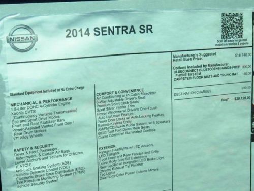 Your someday car is here, today. Sentra completely redefines what an affordable car can be and proves the good life is well within reach. With tasteful styling inside and out, advanced available features youll love, and a huge interior with surprising luxuries like Dual Zone Automatic Temperature Control and Push Button Ignition. The drives special too, with a super-smooth Xtronic CVT transmission and a class-leading 34 combined MPG. More than just a pretty face, Sentras design was perfected in the wind tunnel, to create a ride thats as quiet as it is fuel-efficient. As enticing as each detail is, Sentra was designed as a whole, complete vision of what a modern sedan should be. Your Sentra comes standard with a set of 16 steel wheels with stylish wheel covers and P205/55R16 all-season tires. Standard on all Sentra trims, front boomerang-shaped, halogen headlights are paired with LED accent lights, making a brilliant first impression. Its important to be surrounded by things you love. Like a flowing dashboard design inspired by a birds wing. Soft-touch materials throughout the cabin, and unexpected available luxuries like rich wood-tone trim and perforated leather-appointed seats that come together to create a very personal space. Fine Vision electroluminescent gauges give confidence to the Sentra driver with a clean, concise readout in all lighting conditions, improving visibility and reaction time. This is Sentra, exactly the way you want it. Sentra is powered by a 130hp, 1.8-L 4-cylinder engine, that achieves an impressive 39 mpg on the highway. It's built compact with special friction reducing coating, and advanced technologieslike twin continuously variable valve timing, and beehive shaped valve springs for power and efficiency. Sentra is equipped with three drive modes to suit your mood. Choose Eco to help maximize fuel efficiency. For maximum responsiveness and a boost of fun try Sport mode. For an ideal blend of efficiency and performance Wesley Chapel Nissan offers a great selection of cars, trucks, and sport utilities. Our Internet Pricing policy offers low prices, plus we offer a wide variety of financing terms. Call our Internet Sales Team @ 866-913-9478 day or night ! Print this page out and present to a Internet Sales Team member and get a extra $250.00 off!