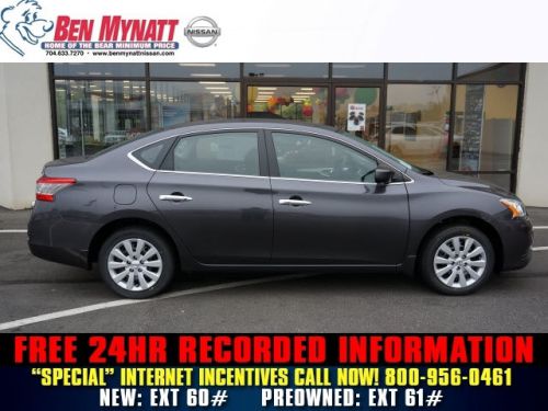 [L92] CARPETED FLOOR MATS W/TRUNK MAT... [B92] BODY COLORED SPLASH GUARDS, iPod/MP3 Input, Head Airbag, CD Player. Amethyst Gray exterior and Charcoal interior, SV trim. Warranty 5 yrs/60k Miles - Drivetrain Warranty; CLICK NOW!======KEY FEATURES INCLUDE: iPod/MP3 Input, CD Player. MP3 Player, Remote Trunk Release, Keyless Entry, Steering Wheel Controls, Child Safety Locks. ======OPTION PACKAGES: BODY COLORED SPLASH GUARDS, CARPETED FLOOR MATS W/TRUNK MAT. SV with Amethyst Gray exterior and Charcoal interior features a 4 Cylinder Engine with 130 HP at 6000 RPM*. ======EXPERTS REPORT: Taller drivers will welcome the Nissan Sentra's unexpectedly spacious front seats. Rear-seat passengers aren't left out, either. the Sentra practically feels like a midsize sedan from the backseat. -Edmunds.com. ======BUY FROM AN AWARD WINNING DEALER: Visit us Today! Dealer Award Winner for outstanding sales and service in the Charlotte region. We are one of North Carolina's Largest Certified Nissan Dealers. Our team is professional, offers you a no-pressure environment and operates with the quality you expect. Price includes all applicable rebates in lieu of special NMAC finance rates and may be based on purchaser's zip code at the time of purchase. Prices do not include taxes, tag, and $589 administrative fee. Horsepower calculations based on trim engine configuration. Please confirm the accuracy of the included equipment by calling us prior to purchase.