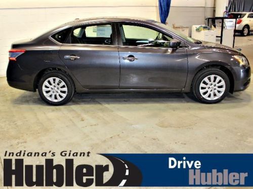 SV trim, Amethyst Gray exterior and Charcoal interior. CD Player, Auxiliary Audio Input, [K01] SV DRIVER PACKAGE, CHARCOAL, PREMIUM CLOTH SEAT TRIM, AMETHYST GRAY, Overhead Airbag, [L92] CARPETED FLOOR MATS W/TRUNK MAT... AND MORE!======KEY FEATURES INCLUDE: Auxiliary Audio Input, CD Player MP3 Player, Remote Trunk Release, Steering Wheel Audio Controls, Child Safety Locks, Stability Control. ======OPTION PACKAGES: SV DRIVER PACKAGE: sliding armrest, Smart Auto Headlights, Bluetooth Hands-Free Phone System, Leather Wrapped Shift Knob, Sliding Front Armrest, Nissan Intelligent Key, illuminated push button ignition, Leather Wrapped Steering Wheel, Tire Pressure Monitoring System, easy-fill alert feature, CARPETED FLOOR MATS W/TRUNK MAT, CHARCOAL, PREMIUM CLOTH SEAT TRIM, AMETHYST GRAY. SV with Amethyst Gray exterior and Charcoal interior features a 4 Cylinder Engine with 130 HP at 6000 RPM*. One Year No Charge Oil Changes. ======EXPERTS ARE SAYING: Taller drivers will welcome the Nissan Sentra's unexpectedly spacious front seats. Rear-seat passengers aren't left out, either. the Sentra practically feels like a midsize sedan from the backseat. -Edmunds.com. ======WHY BUY FROM US: After more than 50 years in business, The Hubler Auto Group, through the power of ten central Indiana locations, has literally sold hundreds of thousands of vehicles and is one of the oldest and most prolific auto dealers in the State employing 550 people. The Hubler Auto Group can claim the title for selling more G.M. vehicles in the State of Indiana than any other dealer or dealer group, and has earned the right to brag of having the largest and most loyal customer Horsepower calculations based on trim engine configuration. Please confirm the accuracy of the included equipment by calling us prior to purchase. Hubler Nissan is committed to providing the finest automotive ownership experience through superior customer service. Let us make you a "Customer for life". We have 99% Guaranteed Credit Approval! For more details or to schedule an appointment, call us at 888-548-9398.