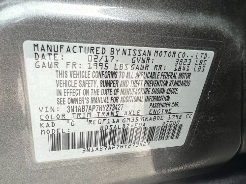 VIN (Vehicle Identification Number): 3N1AB7AP7HY273427