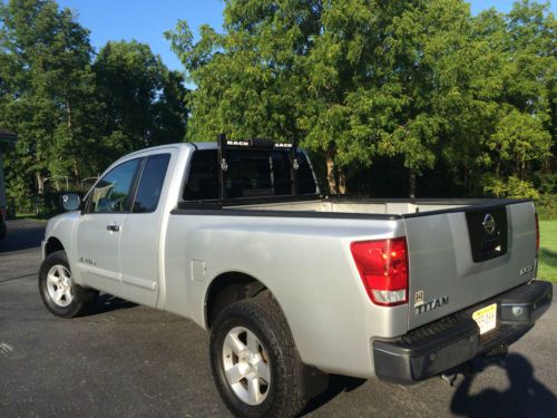 Very Clean Nissan Titan pickup. It was never used to carry too much, just my sons dirt bike. Very Well Maintained! I have most records. Has new Bilstein shocks and leveler kit that cost over $1000.00 installed. Also replaced the stock exhaust manifolds with Stillen Headers. More power and great sound. Still quiet though. Stock exhaust from headers back is only a year old. Also had drilled brake rotors installed on the front when brakes were replaced three months ago. Oil changed every 3k miles. Back rack was added to tie my sons dirt bike down. Tow package. Optional Rockford Fosgate Stereo with SAT radio. This truck needs nothing and is ready to go. Only defect is small tear in drivers seat that can be seen in picture. I hate to sell it but my daughter just started driving and needs a car. Call me with any questions. 973 930 9541. Thanks for looking!