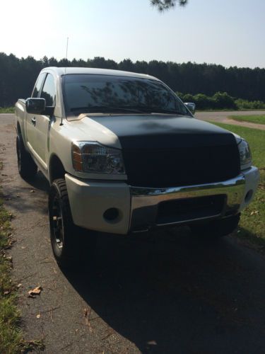 I have a 2006 Nissan Titan. The truck has always been serviced with mobile 1 lubricants. It has custom paint work, aftermarket grill,6inch pro comp lift, brand new 35x12.50x20 gladiator m/t's, 20inch gear matt black wheels, brand new bilstein shocks, 8inch alpine 2-din head unit with navigation and dvd, Led lights installed on the inside, 5%tint all the way around. I also have the bushwacker fender flares painted to match the truck and step bars not installed but they do come with it. Its got a prg aftermarket transmission mount,drive shaft spacer and sway bar end links. The truck is very unique it always turns heads.