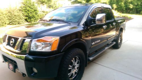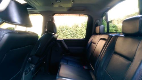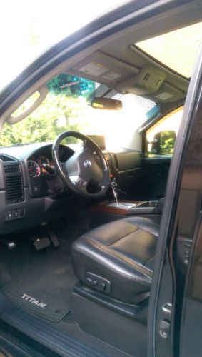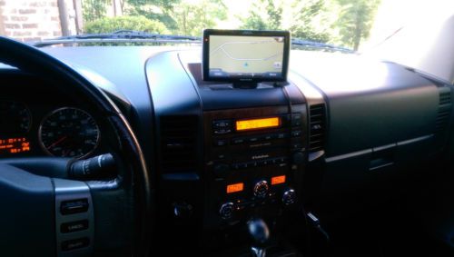 This truck has 305x55xR20 Nitto Terra Grapplers on after-market 20' MB rims. The tires have less than 10,000 miles on them. Never towed anything major, truck includes factory towing package. Truck has wood grain console and new design gauges, black leather interior, power sunroof, power front seats, heated front seats, power sliding rear window, power windows/locks, tinted windows, Bluetooth, 6 disk CD/MP3 Changer, Satellite Radio, powered Rockford Fosgate subwoofer, after-market GPS, backup sensors, running boards, factory bed-liner, in-bed cargo management system/tie-downs, wired for rear DVD system, only needs a screen, etc. There is a small dent on the top of the tailgate, and a few minor scratches, nothing major -- it is a truck, but want full disclosure. Also the driver's captain chair armrest has some cracking in the leather. Other than those deficiencies, this truck has been very well maintained. I will also include several new / never opened containers of Nissan Transmission & Gear fluids, over $200 worth still new in unopened containers (local pickup only for the free fluids, I will ship the vehicle anywhere US at the buyers expense). |