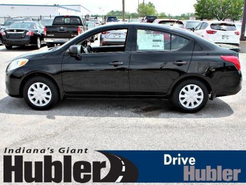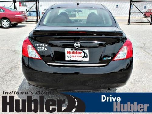 EPA 40 MPG Hwy/31 MPG City! S Plus trim, Super Black exterior and Charcoal interior. iPod/MP3 Input, CD Player, [CHR] CHROME TRUNK ACCENT, [FL2] CARPETED FLOOR & TRUNK MATS (5-... [SGD] SPLASH GUARDS, Head Airbag, SUPER BLACK READ MORE!======KEY FEATURES INCLUDE: iPod/MP3 Input, CD Player. Rear Spoiler, Child Safety Locks, Electronic Stability Control, Bucket Seats, Brake Assist. ======OPTION PACKAGES: SUPER BLACK, CHARCOAL, CLOTH SEAT TRIM, CARPETED FLOOR & TRUNK MATS (5-PIECE), SPLASH GUARDS, CHROME TRUNK ACCENT. S Plus with Super Black exterior and Charcoal interior features a 4 Cylinder Engine with 109 HP at 6000 RPM*. One Year No Charge Oil Changes. ======EXPERTS ARE SAYING: Edmunds.com's review says . the Versa boasts a rare attribute in this segment: an extremely spacious backseat that provides plenty of legroom even for adults. This is a major advantage for those who frequently ferry taller passengers who would likely be uncomfortable in most of the Versa's less spacious rivals.. Great Gas Mileage: 40 MPG Hwy. ======MORE ABOUT US: After more than 50 years in business, The Hubler Auto Group, through the power of ten central Indiana locations, has literally sold hundreds of thousands of vehicles and is one of the oldest and most prolific auto dealers in the State employing 550 people. The Hubler Auto Group can claim the title for selling more G.M. vehicles in the State of Indiana than any other dealer or dealer group, and has earned the right to brag of having the largest and most loyal customer Horsepower calculations based on trim engine configuration. Fuel economy calculations based on original manufacturer data for trim engine configuration. Please confirm the accuracy of the included equipment by calling us prior to purchase. Hubler Nissan is committed to providing the finest automotive ownership experience through superior customer service. Let us make you a "Customer for life". We have 99% Guaranteed Credit Approval! For more details or to schedule an appointment, call us at 888-548-9398.
