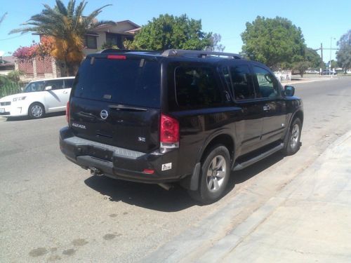 CAR RUNS GOOD NO ENGINE PROBLEMS , NO TRANSMISSION PROBLEMS , NO INTERIOR PROBLEMS , NON SMOKING ARMADA , 4X4 WORKS GOOD , CAR RUNS SMOOTH AND STRONG ,, AMAZING MILES PER GALLON HWY IS GIVING ME AROUND 18-20 MPG NOT BAD AT ALL , REVERSE CAMARA , LEATHER , CONS {1} RIGHT SIDE , SEAT SRS AIR BAG DEPLOYED ... REASON U CAN SEE ON PICTURES RIGHT SIDE FENDER SCRATCH THATS ABOUT ALL ... {2} 2 FRONT SEATS ARE NOT WORKING I DONT KNOW IF ITS A RELAY OR FUSE {3} A/C WAS WORKING JUST FINE BUT A/C MOTOR STOPED YESTURDAY THATS ALL OTHER THAN THAT CAR IS IN PERFECT RUNNING CONDITIONS CAR IS SOLD AS IS NO WARRANTY , NO REFUNDS , SECURITY DEPOSIT IS DUE 24 HOURS FROM AUCTION ENDS THIS ARMADA HOLDS A SALVAGE TITTLE U WILL BE GIVEN A SALVAGE TITTLE AND A BILL OF SALE NO LICENSE PLATES REGISTRATION IS UP TO THE BUYER AND SHIPPING IS ON YOUR OWN EXPENSES WE DONT SHIP BUT CAN WORK WITH THE BUYER TO GET IT SHIPPED UNDER YOUR OWN EXPENSES FEEL FREE TO ASK QUESTIONS IF U HOLD A 0 FEED BACK GET TO US BEFORE BIDDING OR U WILL BE DELETED NO EXEPTIONS. WHAT U SEE IS WHAT U GET GOOD LUCK BIDDING AND THANKS |