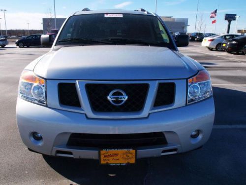 Finally a full-size SUV that's ready to take on whatever you can give it. The 2013 Armada SV shown here in [[[TrimColorBrilliant Silver]]] is powered by Nissan's 5.6L Endurance V8 which produces 317 horsepower and is mated to a 5-speed automatic. Together, you can achieve nearly 20 mpg on the open road. Outside, the brawny exterior is complete with 18-inch aluminum-alloy wheels, running boards, dual front tow hooks, painted roof rack and a rear sonar system. Step inside the premium interior, and you'll find a plethora of features designed to spoil you. A vehicle information system w/7'' color monitor, Bluetooth hands-free phone system, dual zone automatic temperature control and power adjustable pedals are just a few of these features. Dual power front seats, leather-wrapped steering wheel and an AM/FM/CD audio system w/auxiliary audio/video input jacks and 8 speakers makes the road trip just that much more comfortable. Six airbags, including dual front airbags, side-impact airbags and roof-mounted airbags,Vehicle Dynamic Control (VDC), Traction Control System (TCS), Active Brake Limited Slip (ABLS) and a zone body construction with front and rear crumple zones are also standard for added peace of mind. Treat yourself and your family to an SUV designed to tackle everyday tasks with style and grace...The Armada. Print this page and call us Now... We Know You Will Enjoy Your Test Drive Towards Ownership! Another Amazing Deal We carry the largest Nissan and Hyundai inventory in the state of Missouri and back up our commitment to offer the greatest selection and purchasing convenience to our customers. You will find no dealer mark-ups or addendums to the manufacturer's sticker prices here. We mean it when we say "No Gimmicks - No Games!" We attempt to make your buying experience straight-forward.