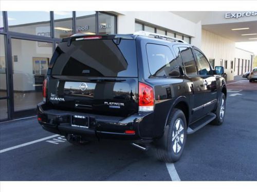 DVD, 3rd Row Seat, Sunroof, NAV, Heated Leather Seats, 4x4, Heated Rear Seat, Overhead Airbag, GALAXY BLACK, [X01] 2ND ROW CAPTAIN SEAT PACKAGE, Quad Seats. Platinum trim, Galaxy Black exterior and Charcoal interior CLICK ME!======KEY FEATURES INCLUDE: Heated Leather Seats, Heated Rear Seat, Heated Mirrors, Third Row Seat, Navigation, DVD, Sunroof, 4x4, Power Liftgate, Rear Air, Back-Up Camera, Premium Sound System, Satellite Radio, iPod/MP3 Input, Bluetooth. MP3 Player, Remote Trunk Release, Privacy Glass, Keyless Entry, Steering Wheel Controls. ======OPTION PACKAGES: CHARCOAL, LEATHER-APPOINTED SEAT TRIM: Front and 2nd row seats, 2ND ROW CAPTAIN SEAT PACKAGE: 2nd row captain seats and 2nd row center console w/padded armrest, Seating reduced from 8 to 7 passengers, FLOOR & CARGO MATS (5-PIECE SET), GALAXY BLACK. Platinum with Galaxy Black exterior and Charcoal interior features a 8 Cylinder Engine with 317 HP at 5200 RPM*. ======EXPERTS REPORT: KBB.com explains Nissan's 2014 Armada's interior is designed to adapt to multiple needs, able to shuttle up to eight passengers, or just two people and 97 cubic feet of assorted cargo.. Approx. Original Base Sticker Price: $54, 200*. ======VISIT US TODAY: Visit us Today! Dealer Award Winner for outstanding sales and service in the Charlotte region. We are one of North Carolina's Largest Certified Nissan Dealers. Our team is professional, offers you a no-pressure environment and operates with the quality you expect. Price includes all applicable rebates in lieu of special NMAC finance rates and may be based on purchaser's zip code at the time of purchase. Prices do not include taxes, tag, and $589 administrative fee. Pricing analysis performed on 3/1/2014. Horsepower calculations based on trim engine configuration. Please confirm the accuracy of the included equipment by calling us prior to purchase.