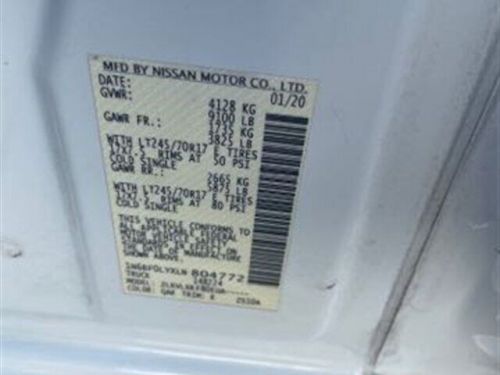 VIN (Vehicle Identification Number): 1N6BF0LYXLN804772