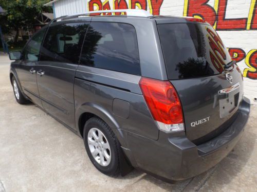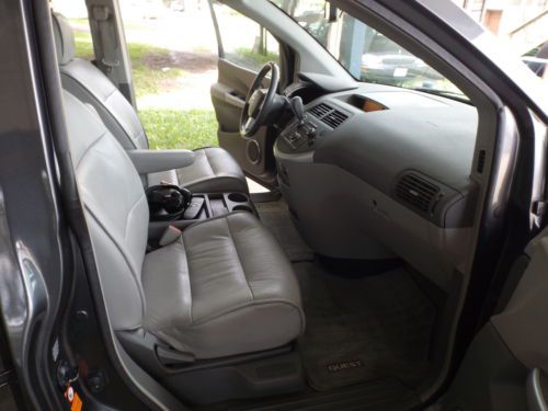 2007 NISSAN QUEST 3.5 SL QUAD SEATING LEATHER NO RESERVE!!!! This is a NO RESERVE AUCTION I am selling it to the highest bidder no matter what it brings This 2007 NISSAN QUEST is loaded with all these desirable features: 3.5 LITER V-6 ENGINE, automatic transmission with overdrive, SL TRIM PACKAGE, factory alloy wheels with a matching set of tires with many miles remaining, Heated Leather Power Seats, Premium Stereo with AM/FM and Cd Players, Quad Seating, factory alarm system with keyless entry, Rear DVD player with wireless headphones, Power Sliding Doors and Power Hatch, and much much more. The Smoke Metallic Exterior is as glossy as it was new, the only thing preventing me from calling it perfect are a few minor rock chips and scratches too small to show up in the pictures. The Leather Interior is also in excellent condition with burns, tears, or stains. It is a NON-Smoker. Mechanically it is in perfect condition with everything working as it should including the engine, transmission, and air-conditioning. The WINNING BIDDER will not be disappointed with this well maintained hard to find 2007 NISSAN QUEST 3.5 SL. I try to describe my vehicles to the best of my ability, should the winning bidder find that this vehicle has been misrepresented they will be released from any obligation to purchase. I am licensed and bonded Missouri Used Vehicle Dealer.