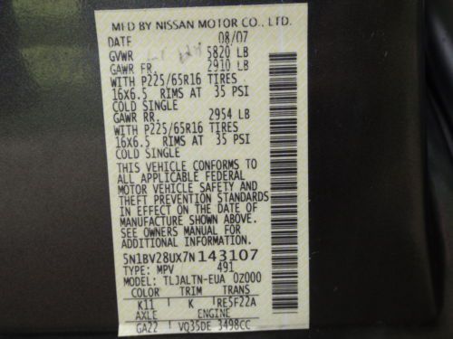 2007 Nissan Quest Sl Mini Passenger Van 4-door 3.5l Leather Dvd No Reserve on 2040-cars