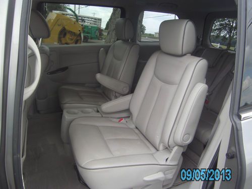 Here is a money saver for someone interested in a little project, or drive it the way it is. This was a new vehicle when we received it with about 40 other flood vehicles purchased last winter. most all are sold but we chose to drive this vehicle as our personal one for a few months till we get our other one repaired. This van had only a few inches of water in floor. upon my memory everything works but the driver power seat. power sliding doors sometimes go part way then go back. and the airbag light is on. This van is loaded with leather, rear backup camera, power windows, locks, mirrors, power hatch, power slide doors. Great running vehicle! like I mentioned we drove it 3800 miles with no glitches. water line was low enough i dont think it effected anything exterior. has a PA salvage certificate. should be able to title in any state but NY since it had a previous 907A nonrepairable. any questions please ask.