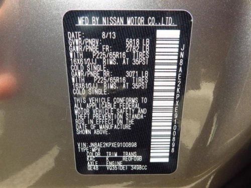 VIN (Vehicle Identification Number): JN8AE2KPXE9100898