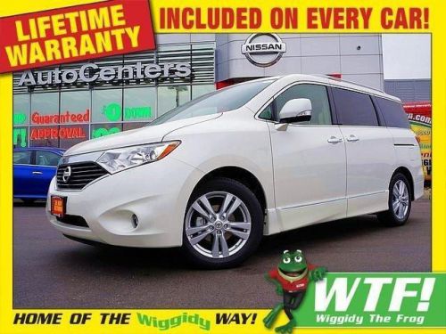 This is a REAL price on a REAL car! We Buy, Sell, Ship and Finance NATIONWIDE! DVD PACKAGE, BOSE PACKAGE, and DUAL MOONROOF PACKAGE INCLUDED!! All our New Nissans come with a LIFETIME Warranty, a 30 day 3000 mile money back guarantee and $100 in rewards credit! NO dealer in the country does what we do! No vehicles are held, all sales are first come first buy bases. AutoCenters reserves the right to end any auction or change a price without prior notice. See our complete inventory at AutoCentersNissan.com. Price includes current Nissan customer cash, $600 college graduate discount, $500 trade assistance, $500 NMAC Captive Cash with approved credit and ALL Active Military personnel saves an additional $1,000!!! For additional information please contact AutoCenters Nissan at 888-455-0302 or visit us online at www.autocentersnissan.com. Inspired by super high-speed trains, the 2014 Nissan Quest cuts a bold silhouette that stands out in a crowd. It features distinctive rear wraparound glass, and a dipping side character line that makes it look like it's on the move, even when it's parked. Quest's available one-touch power sliding doors make loading up easy. Quest's interior seating can be configured to your preference. The sliding and reclining second-row captain's chairs fold flat with the pull of a lever, and the quick-release third-row bench seat easily folds flat or can be configured into a 60/40 split. The cargo well behind the rear seats is always open for business, thanks to third-row seats that fold forward. The Nissan Intelligent Key lets you tap a button on the door handle or hatch to unlock Quest, while your keys stay in your pocket or purse. Quest's legendary 3.5-liter V6 engine features an advanced valve timing system that optimizes its power and efficiency. The engine is paired with Nissan's Xtronic CVT creating a smooth ride with no shift-shock. Using hydro-electric power steering instead of hydraulic power steering cuts down on the amount of power neede