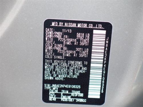 VIN (Vehicle Identification Number): JN8AE2KP4E9106325
