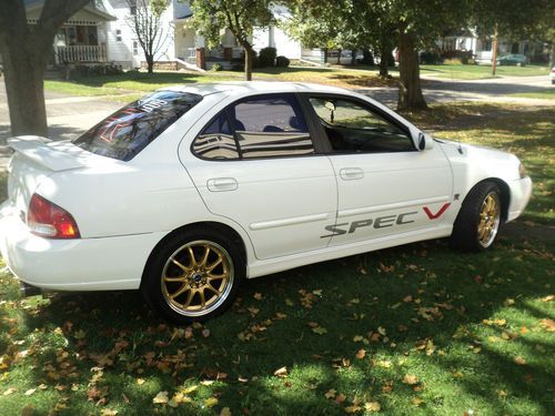 Selling my 2003 Nissan Sentra SE-R spec v. It is very nice. No rust. Has been in the south. Last year was the first winter it was here. I did drive this car in the snow twice last year, the limited slip transmission makes it very good in the snow. I always washed it before putting it away. Car gets stored inside. It has 49,000 original miles. Has passed emissions test, I have all paper work for the car. It has been in no wrecks. I have the clean title in my name, no liens. The car is very nice. It has a stock engine, manual lsd transmission and clutch. They all perform as they should. This car has been well maintained. Always used synthetic fluids. It leaks no fluids nor does it burn or use any fluids. It has had new brakes, calipers, air filter, coolant flush, transmission fluid change in the past 4000 miles. The car's interior is nice, exterior is the same. I don't smoke, I never had my dog in it. The a/c, heat work great, cruise control, power everything else. Cd player, premium sound. Car does have the limited slip differential. This car has decals on both sides, rear window, and has light tint on the windows. The Apexi full exhaust sounds very good, but not too loud. Yes, it still has the cat converters. This car has Drag 17 inch rims with brand new 225/45/zr17 tires all matching and under warranty. The car comes with these wheels and the spare in the trunk. The cloth and carpets are in good shape as it only has 49,000 miles.I have countless dollars into this car. Please don't hesitate to ask any questions. Email me or call 440-45three-1609 with any questions or if you have low feedback. Thank You. I will need the deposit as soon as the auction is over. I can pick you up from the Elyria, Ohio Greyhound station or Cleveland Hopkins airport. I can deliver up to 100 miles for an additional fee of $50 dollars. Thank You.