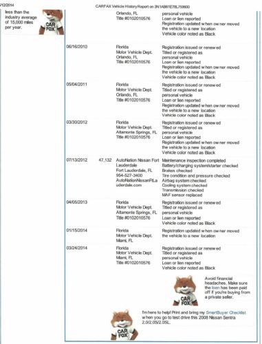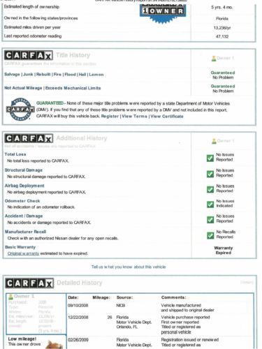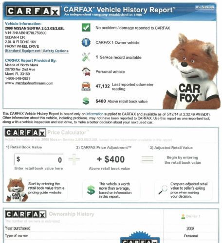 2008 Sentra Auto A/c Carfax Certified One Florida Owner Excellent Condition on 2040-cars