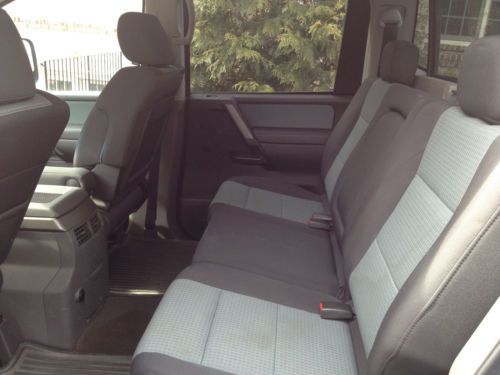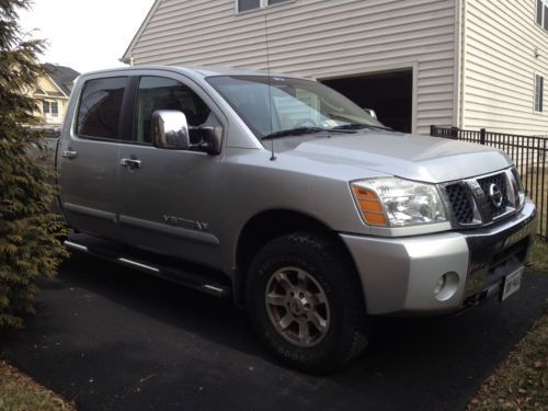 A beautiful Nissan Titan 4x4 with no scratches, dents, or dings. I am the second owner, but the first owner treated it with kid gloves. It is super clean and we are non-smokers. It has brand new brakes all around and new rotors on the front. It has 1 year old shocks (Bilstein) that ride very smoothly. The interior is clean with no tears or stains of any kind. It has an aftermarket Eclipse DVD/Navigation system, but also comes with the original Rockford Fostgate. The tires have about 30k miles on them and have about half tread life left. It has both the towing and the off road package. Behind the cab is a diamond plate tool box that is very handy. The only cosmetic defect is a missing trim piece from the rear passenger door window that came off in a car wash years ago (I just never replaced it, it is not very noticeable). This truck will not disappoint you. Buyer is responsible for pick up, located in Leesburg, VA.