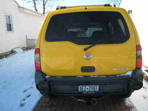 UP FOR SALE IS MY 2003 NISSAN XTERRA WHICH I PURCHASED NEW.CAR HAS BEEN PROPERLEY MAINTAINED ,SYNTHETIC OIL CHANGE 2X A YEAR,AS WELL AS AIR FILTER EVERY 6 MONTHS.6 MONTH OTH BRAKES AND ROTORS,STAINLESS STEEL MUFFLER SYSTEM,NEW BATTERY ,FRONT WIND DEFLECTOR ,TIRES 8 MONTH AGO APPRROX 4500 MILES ON THEM AFTER MKT FRONT AND REAR BUMPERS(FRONT HAS CRACKED BRACKET THAT CAN BE WELDED) OR I CAN REMOVE IT IF YOU PREFER. 2'' TUBULAR TOW HITCH..HEADLINER NEED 2 BE REGLUED ,HOLE IN REAR OF DRIVER SEAT(1/2 OF A DIME). CAR HAS NEVER FAILED ME OR EVER BEEN HIT.REALLY DONT WANT TO SELL IT BUT I NEED A PICKUP FOR WORK ....THATS IT !
