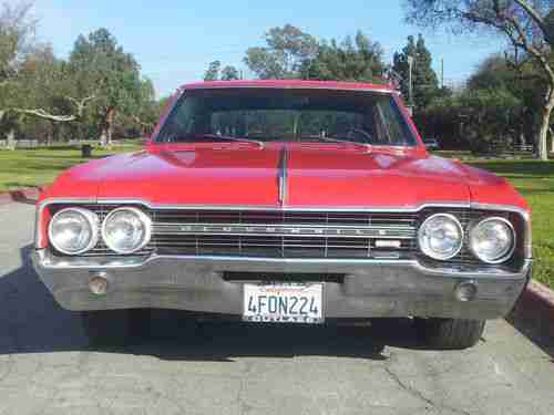 HELLO THERE I AM SELLING MY 65 OLDS ORIGINAL 442 I AM THE SECOND OWNER I BOUGHT IT FROM THE ORIGINAL OWNER ABOUT 16 YRS. AGO I EVEN HAVE THE ORIGINAL BOOK FROM THE CAR.. ALL I HAVE DONE TO THIS CAR IS .. NEW PAINT.. REBUILT THE ENGINE AND TRANS.. BUT ITS STILL THE ORIGINAL ENGINE AND TRANS.. THIS BABY ITS ALL ORIGINAL.. NEVER CHANGED NO BODY PARTS ...IT RUNS LIKE A CHAMP STRONG N SUPER FAST ENGINE... NO OIL LEAKS AT ALL IT DOES NEEDS SOME WORK ON THE INSIDE LIKE UPHOLSTRY.. ETC. I HAVE MORE EXTRA PARTS FOR THE CAR AM THROWING THOSE IN WITH THE CAR TOO I HAVE ALL THECROME MOLDS I JUST DONT HAVE THE TIME TO INSTALL THEM I HAVE TWO SETS OF RIM CAPS ORIGINAL FROM THIS CAR IF U DONT LIKE THE RIMS U CAN PUT THOSE ...ALL THE ELECTRICAL WORKS GREAT... IT EVEN HAS ITS ORIGINAL RADIO..IT DOESNT HAVE A LOT OF CANCER ONLY A LITTLE AS YOU CAN SEE IN THE PIX.. I DRIVE IT EVERY SATURDAY MORNING TO A CAR SHOW ON H.B LIKE 45 MIN FROM MY HOUSE IT TURNS HEADS WHEN AM DRIVING THIS BABY GETS LOTS OF THUMBS UP ;;;;;;; THERES ALOT OF THIS I CAN SAY ABOUT MY BABY BUT IF U HAVE MORE QUESTIONS U CAN CALL ME AT 562 668 1773 NOE.......... NO RESERVE PRICE... HIGHEST BIDDER TAKES IT HOME