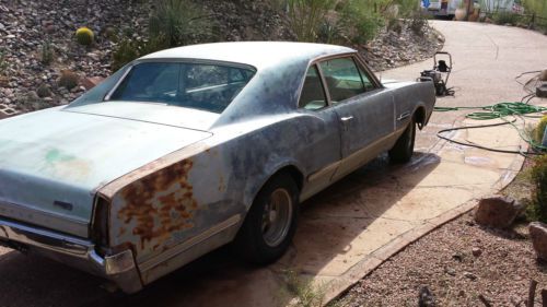 1966 Oldsmobile 442 post coupe. Needs complete restoration. 95% complete, correct original non-running 400v8 engine, auto transmission, floor shift bucket seats, posi rear, original AC car. AZ title. Original mileage unknown. Last ran a few years ago. Still has one factory original rolled-tip tail pipe! Cowl Tag info: 11B R ST 66-33807 LAN 2161 BODY TR 967-B T-T PAINT F 2KXG 5VY Engine Block # 390925E Head Stamp # V103430 Please ask questions prior to bidding. I highly recommend viewing the vehicle prior to bidding. I plan on listing several classic vehicles so please check out my other listings. |