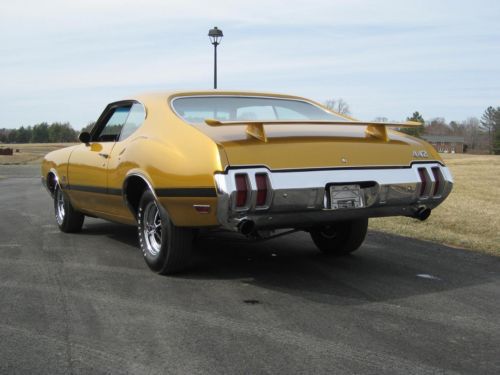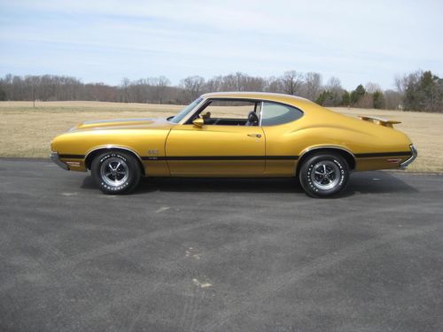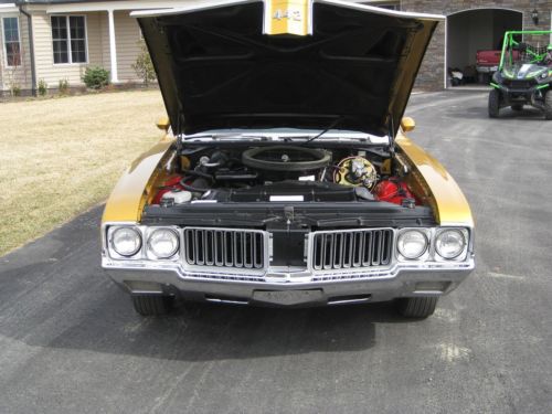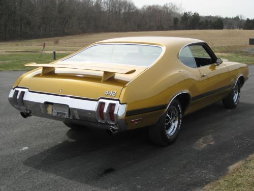 HERE WE HAVE ONE OF THE NICEST AND LOWEST MILEAGE ORIGINAL 1 OF 262 SPORT COUPE 1970 OLDSMOBILE 442 W-30 CARS ON THE MARKET. THIS CAR HAS UNDER GONE A FULL NO EXSPENSE SPARED ROTISSORI RESTORATIONS WITH ALL OF ITS FACTORY ORIGINAL PARTS AND SHEETMETAL. THIS CAR IS FULLY DOCUMENTED WITH GM OF CANADA DOCUMENTATION. ORIGINAL DOCUMENTED NUMBERS MATCHING 455 ENGINE WITH THE F- HEADS AND THE TURBO 400 WITH THE HURST DUAL GATE SHIFTER. THIS CAR HAS 28795 ORIGINAL MILES. RARE AND HIGHLY OPTION CAR WITH FACTORY A/C,POWER STEERING, POWER BRAKE AND POWER WINDOWS. FACTORY ORIGINAL 12 BOLT REAR WITH 323 POSI AND W27 REAR END COVER, ORIGINAL FACTORY SPIRAL SHOCKS.LASER STRAIGHT BODY WITH BEAUTIFUL FACTORY BURNISHED GOLD PAINT. THIS IS A # 1 CONDITION CAR AND SHOULD BE IN A MUSEUM OR A PRIVATE COLLECTION. CALL JASON AT 703-508-9399 WITH ANY QUESTIONS.