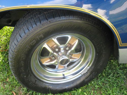 The car has full power equipment, including Power windows and locks, Power drivers seat. Tile wheel and cruise control, Factory AM/FM/ Cassette, Factory T-Tops, Rear defogger, Super Stock wheels, BF Goodrich Tires,