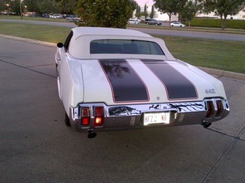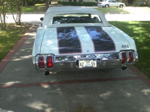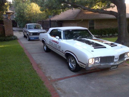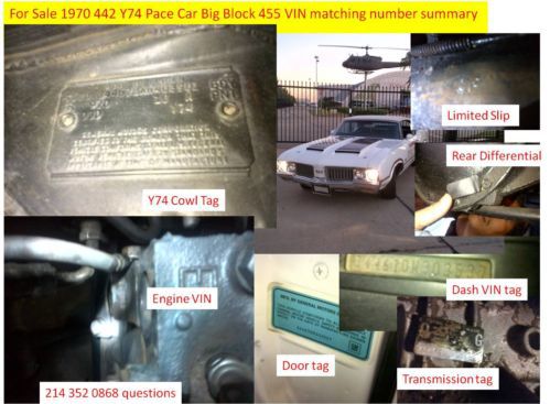 If you are familiar with Oldsmobile history and 442's you can skip this intro. For everyone else this is an iconic muscle car that is rapidly appreciating but still affordable. A rare car made for Indianapolis 500 Pace car in 1970 with only 260 convertibles were made and I think only about 160 of those were the big block 455 442's , with, dual gate shifter, limited slip differential, big track front and rear anti-sway bars, Indy 500 stripes and decals etc. Thus a very limited production rare car nearly impossible to copy. What is really fabulous about this car is the combination of ride, power, space, reliability, top down fun and cool factor. This is the real deal with all numbers matching (one tag on tranny missing part of tag but date code all there), rest of numbers on engine, rear end, axle all matching correct for Y74 Pace car. There is a picture in the ad summarizing all the VIN numbers. 442's in some respects the "Gentleman's" Muscle.. run with the Chevy's but cool factor and sophistication in the day ! If you drive and inspect this car you will understand why. We have owned this car for over 15 years and in that time have had everything done to it, impeccably maintained and detailed. Best of our knowledge has always been a Dallas TX no salt no snow car. Some Features of this 1970 442 Y74 Pace Car