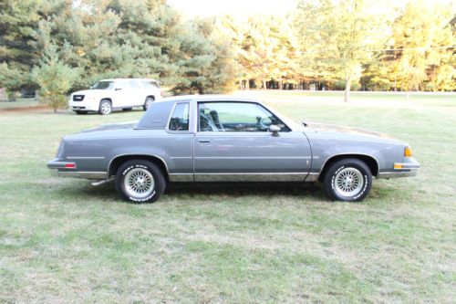 1987 CUTLASS SALON: 16,668 ORIGINAL MILES! 307 V8. THIS CAR CAME FROM KNOXVILLE TENNESSEE OUT OF A PERSONALL COLLECTION. SENIOR OWNED AND WAS KEPT IN A TEMPERATURE CONTROLLED BUILDING ITS WHOLE LIFE. IT DEFINATELY SHOWS EVEN THE UNDERNEATH OF THE CAR LOOKS AS GOOD AS THE OUTSIDE. IT HAS ALL OPTIONS EXCEPT FOR T-TOPS. THE SALON EDITION IS MUCH MORE DESIREABLE THAN THE SUPREME BECAUSE IT HAS ALL THE SAME FEATURES AS THE 442 AND THEY ONLY MADE 9,000 OF THEM! I DO HAVE THE ORIGINAL WINDOW STICKER AND IT WAS $16,500 NEW. A/C BLOWS ICE COLD! I BOUGHT THE CAR FROM THE ORIGINAL OWNER WITH 15,800 MILES. All ORIGINAL EXCEPT THE TIRES AND BATTERY. EXCELLENT CONDITION INSIDE AND OUT. HAS ALL FACTORY PAINT AND NEVER BEEN IN AN ACCIDENT. NOT ONE DING IN THE CAR. INTERIOR IS IN EXCELLENT CONDITION WITH THE EXCEPTION OF TWO TINY CIGARETTE BURN WHOLES IN THE VELOUR ON THE DRIVER SIDE UPPER DOOR PANEL. THIS IS THE ONLY THING NOTEABLE TO LIST. CHEAP FIX. THE CAR HAS BRAND NEW TIRES WITH LESS THAN 1,000 MILES. THIS CAR RUNS AND DRIVES LIKE NEW! BID WITH CONFIDENCE! I DROVE THIS CAR 600 MILES HOME AND GOT 23 MILES TO THE GALLON WITH IT AND IT RAN AND DROVE LIKE A NEW ONE.
