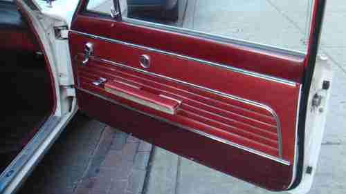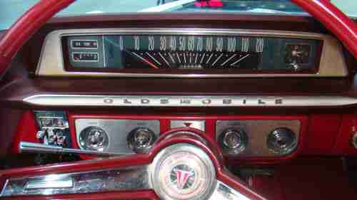 1963 Oldsmobile Cutlass F85 Deluxe Sport Coupe. White exterior, Red interior.